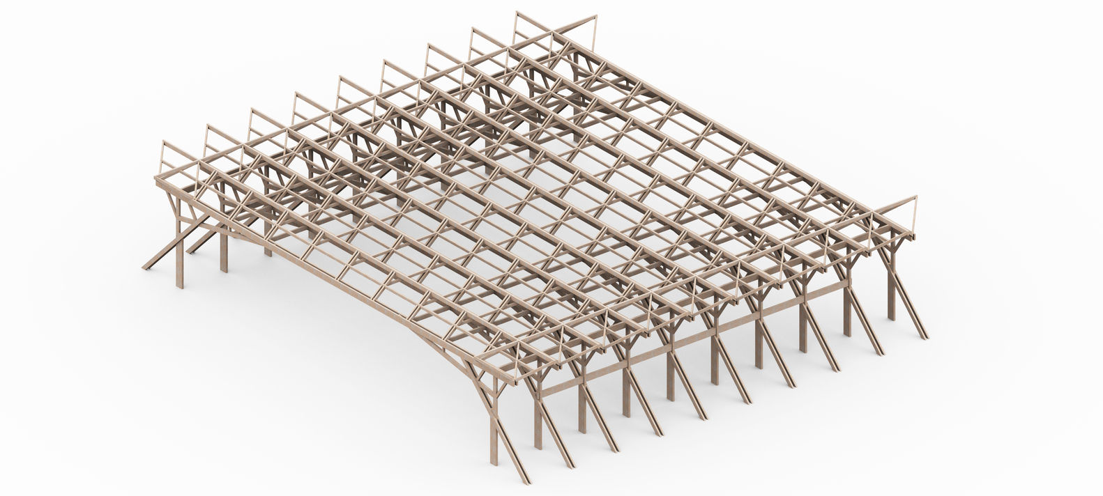 主场馆设计以“木构新境、众檐共景”为设计概念,整体采用胶合木结构,形态塑造源于中国传统建筑坡屋顶形式,既保留了原型屋架的特征,又以非常规的体量凌空而出,形成蕴含结构逻辑的发散式密“檩”, 得以与现代语境融通,展现出木构建筑纯粹的结构美学与文化意味。