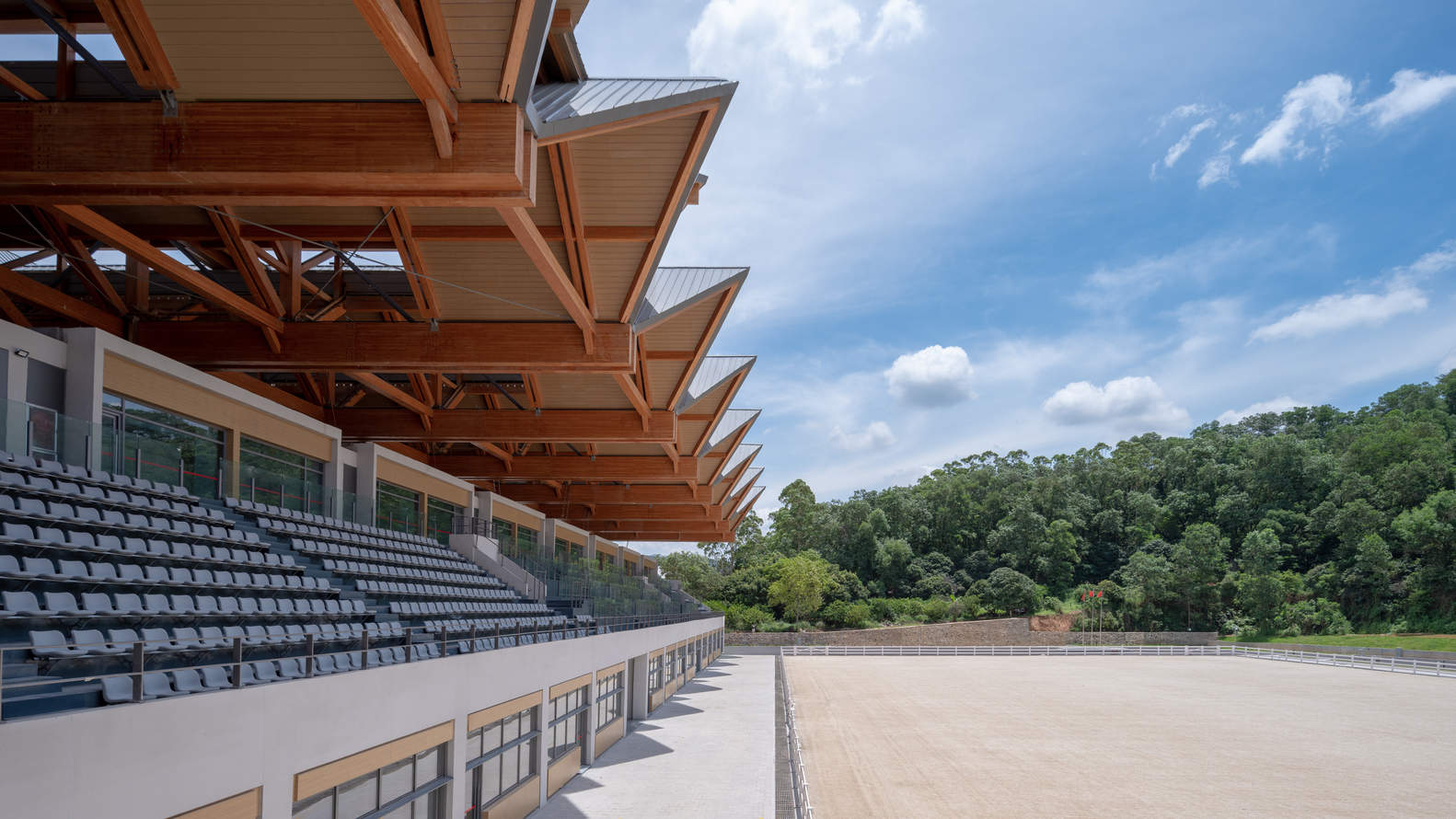 The Guangming International Equestrian Center is located in Guangming Street, Guangming District, Shenzhen, serving as the main venue for Dressage and Show Jumping events for the 15th National Games. The project site covers an area of 50,018㎡, with a total construction area of 44,600㎡. Its functions include the main arena, indoor training hall, outdoor training grounds, competition support facilities, and horse living quarters, capable of accommodating 120 horses.