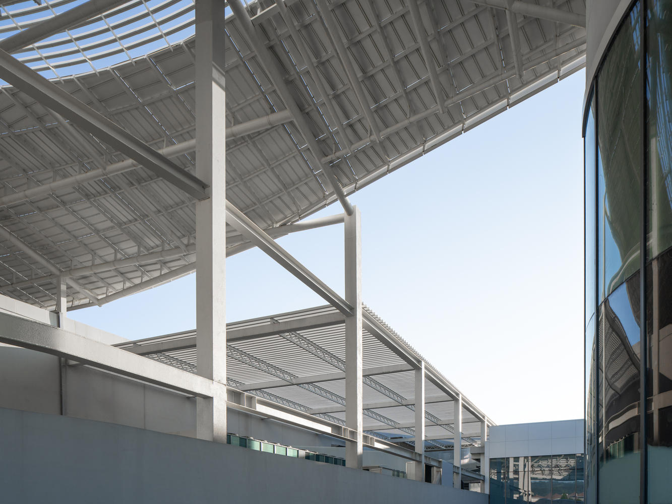 结构上,场馆整体采用大跨度桁架与框架核心筒体系,既保证了空间的灵活性,也兼顾施工与经济性。主体育馆跨度 75.9 米,在桁架结构基础上配置有效的侧向支撑;宴会厅跨度 20.55 米,结合净高与施工条件,采用组合梁结构;羽毛球练馆屋盖跨度 36.5 米,乒乓球馆屋盖跨度 30 米,均采用平面桁架并配备有效侧向支撑。