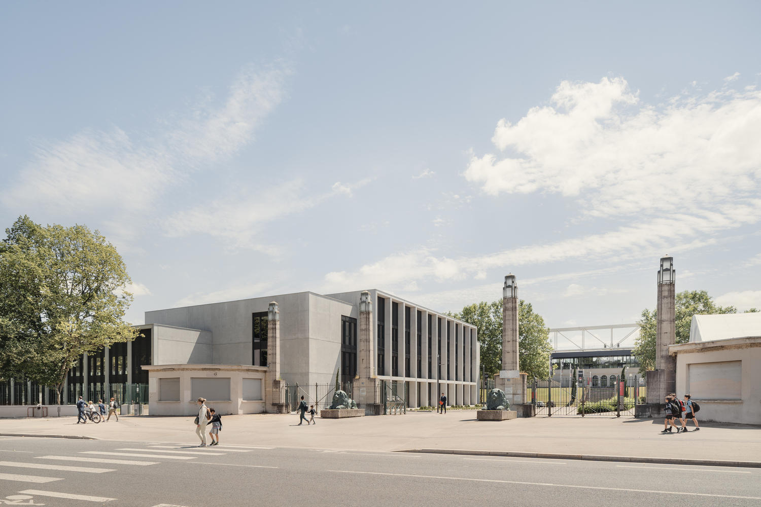 The transformation of the Gerland Aquatic Center presents a unified architectural composition that perfectly integrates into its environment while accommodating several nested programs. The project is a tribute to architecture: its porticoed architecture, exposed concrete, roof terraces, and the minimalism of its façade ornaments maintain coherence in form, structure, and use with all the buildings already constructed by Tony Garnier on this site.