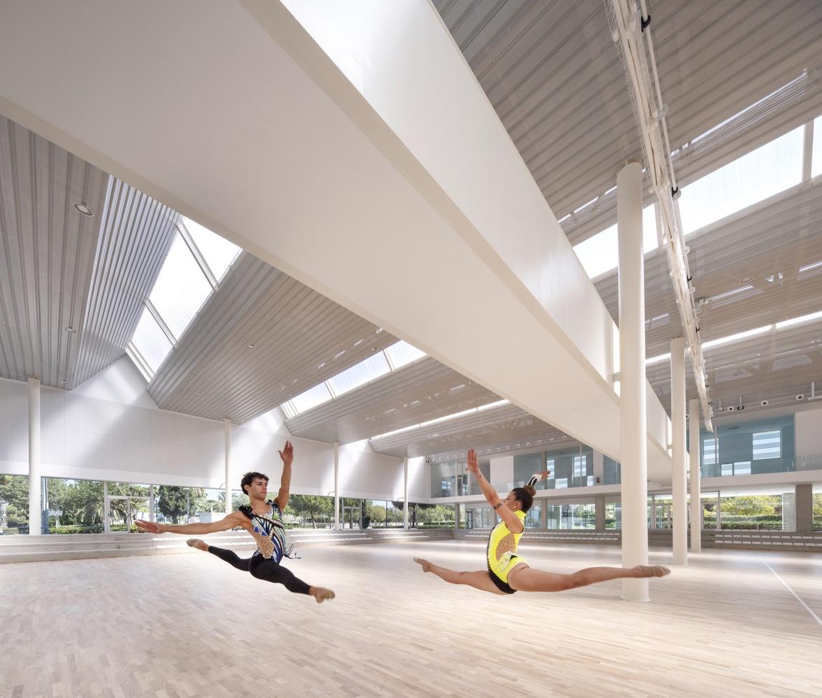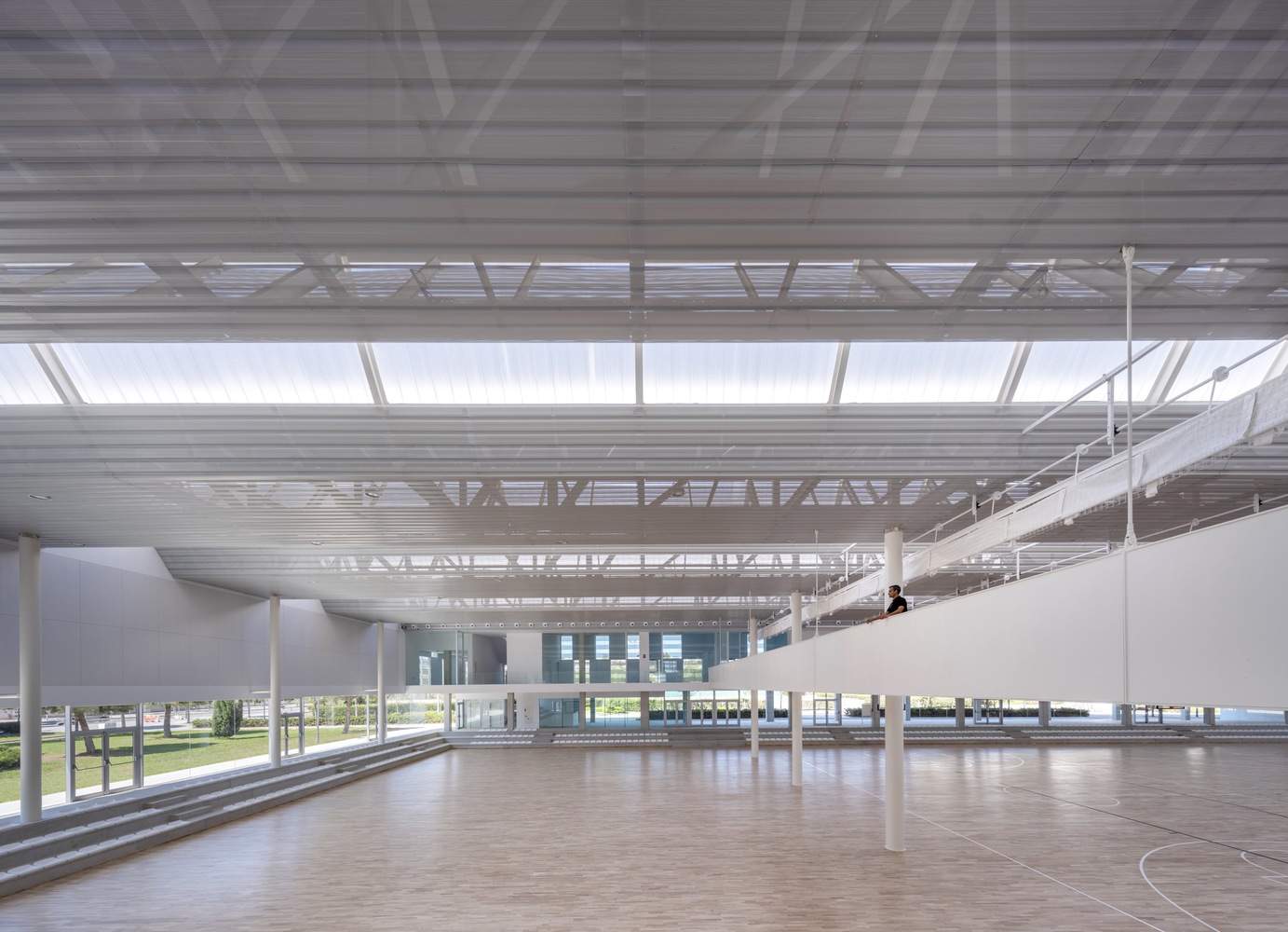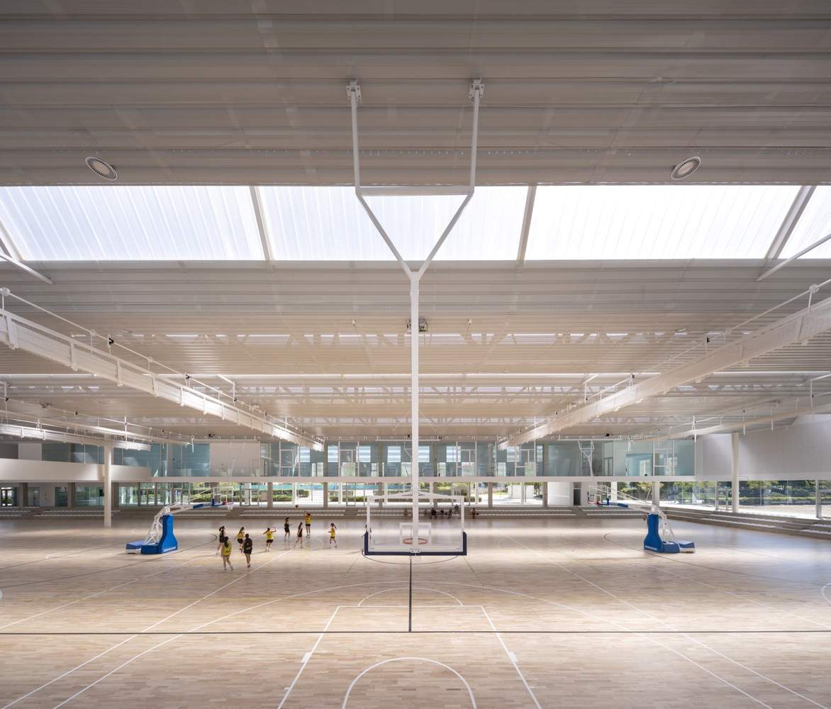 为了实现空间的功能最大化,不同的体育项目被分为两个大型空间:一方面,中央空间用于团队体育项目,相当于 4 个室内篮球场的大小;另一方面,房间空间用于指导性活动和健身房。