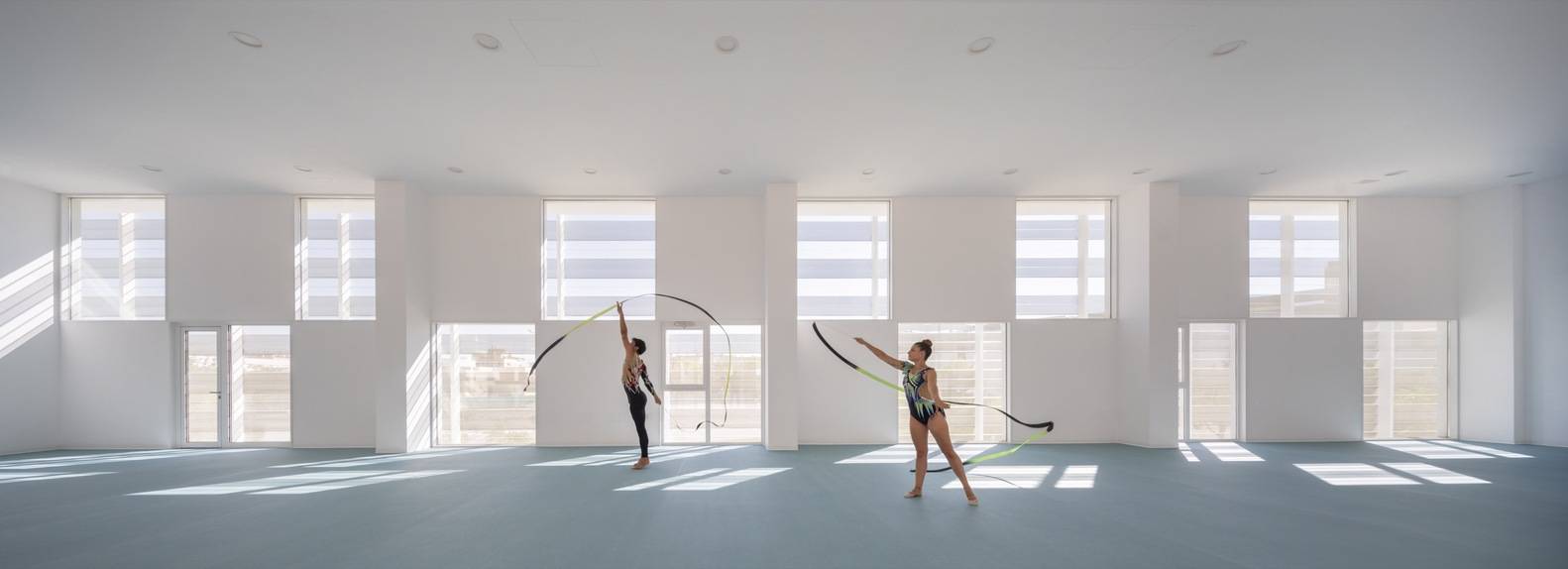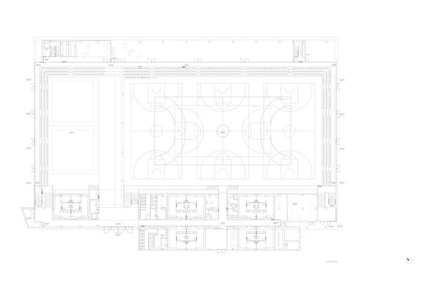 To maximize the functionality of the spaces, the different sports uses are divided into two large areas: on the one hand, the central space, dedicated to team sports, equivalent to 4 indoor basketball courts; and on the other, the room area, dedicated to guidance activities and the gym.