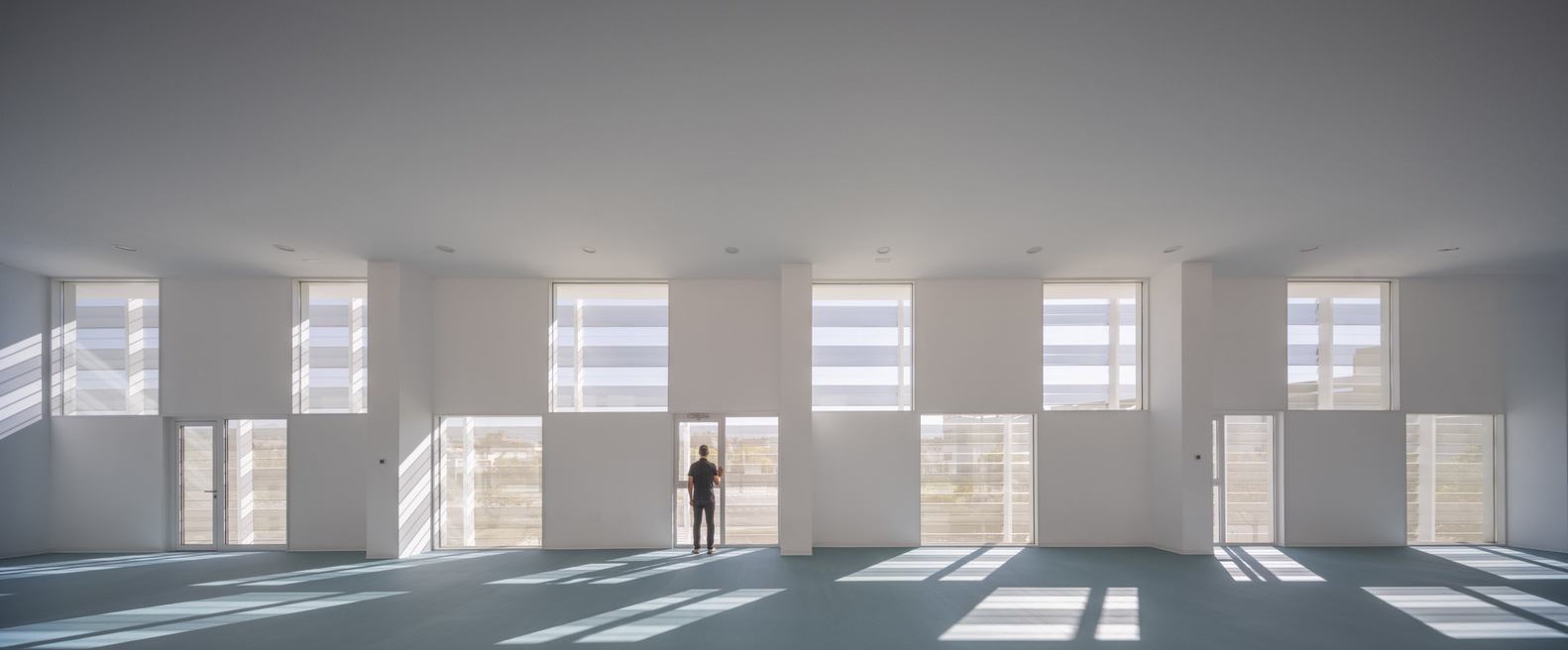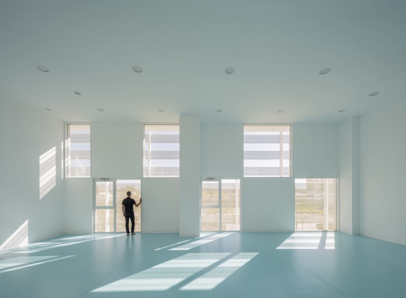 The building is designed as a highly efficient system in terms of energy use, maximizing natural light in all spaces and incorporating an electric natural ventilation system that allows for cross-ventilation of the entire building volume through vents on its facade and roof, which dissipate the heat accumulated during the day at night.