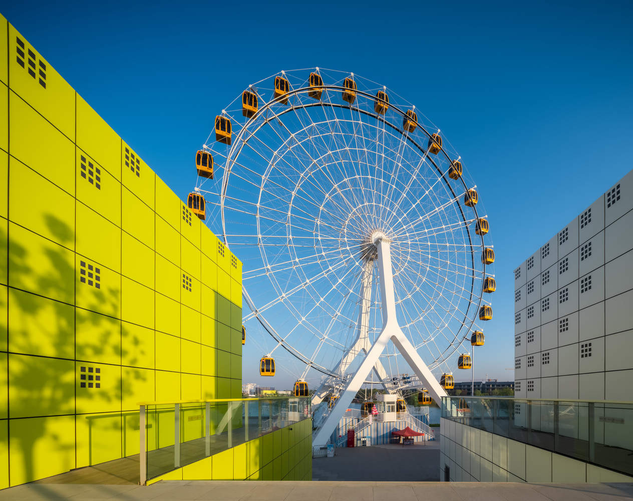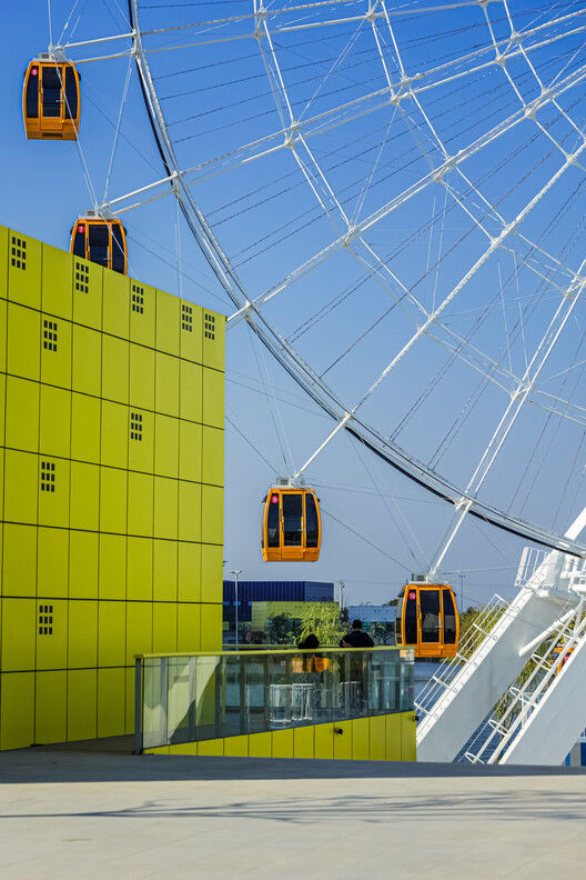 综合体设计的尺度与主题的创新融合:该项目成功地将一个围绕中央湖区的大型综合体,整合了娱乐、体育和零售等多元功能。其设计精髓在于建筑体量与三维像素主题外立面的有机结合,这种强烈的视觉符号不仅塑造了独特的建筑形象,也暗示了内部丰富多元的活动内容。通过大面积公共露台的设置,建筑实现了与周边环境的积极对话,使其成为区域内一个极具辨识度的地标,体现了当代商业综合体在形态创新与功能集成上的高标准追求。