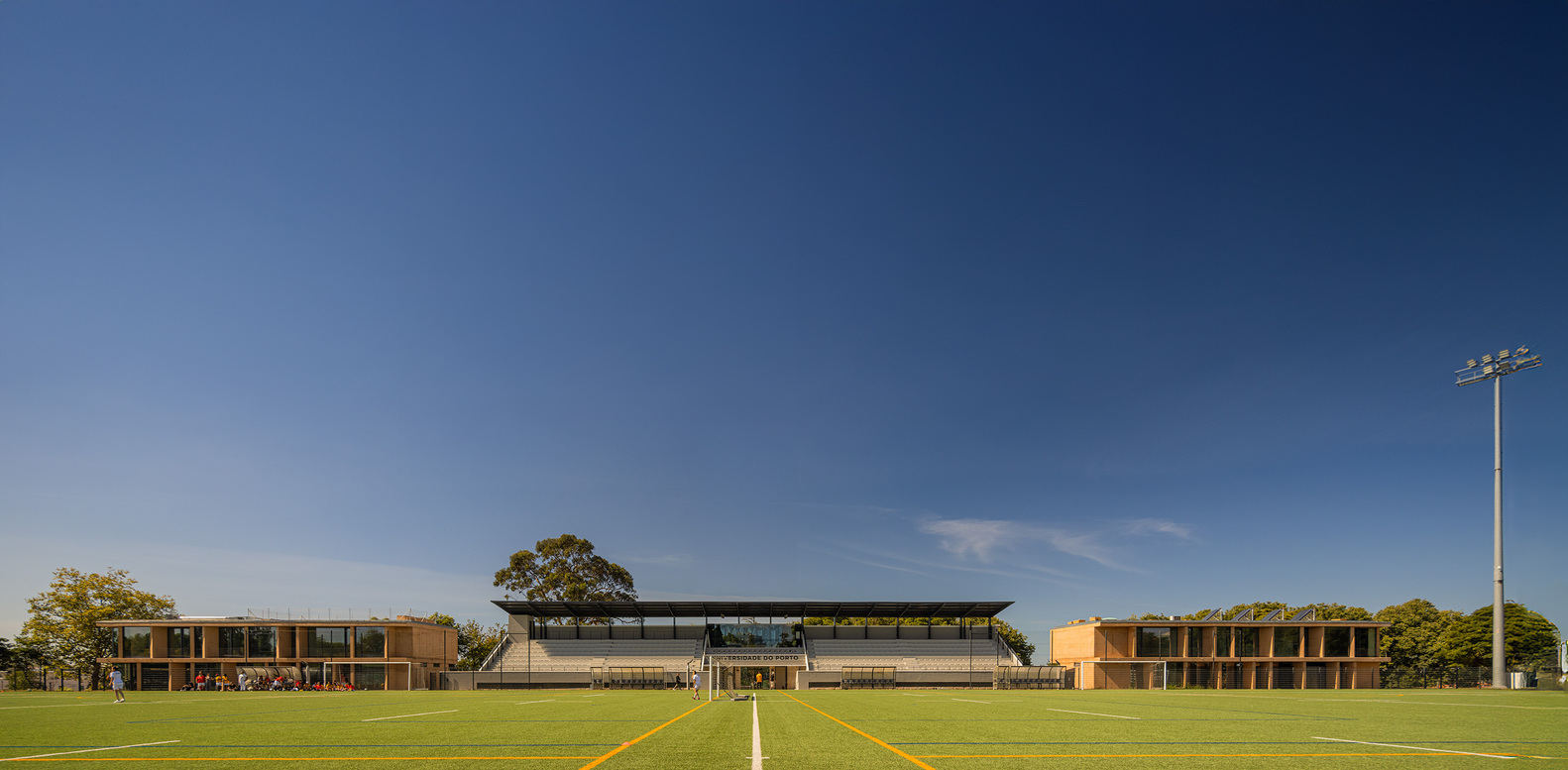 The project, led by the University of Porto and designed by Crea - Arquitetos, aimed to renovate and expand the grandstand and headquarters of CDUP (University of Porto Sports Club). Located in Quinta do Campo Alegre, the stadium, originally built in 1953, underwent a lengthy renovation process, impacted by the pandemic, before finally reopening to the public. The design team faced the challenge not only of refurbishing the existing grandstand but also of integrating the new CDUP buildings, striving to create a complete and unified complex. The architecture needed to respect the site's historical context, establishing a temporal connection with the environment rather than severing the original background.