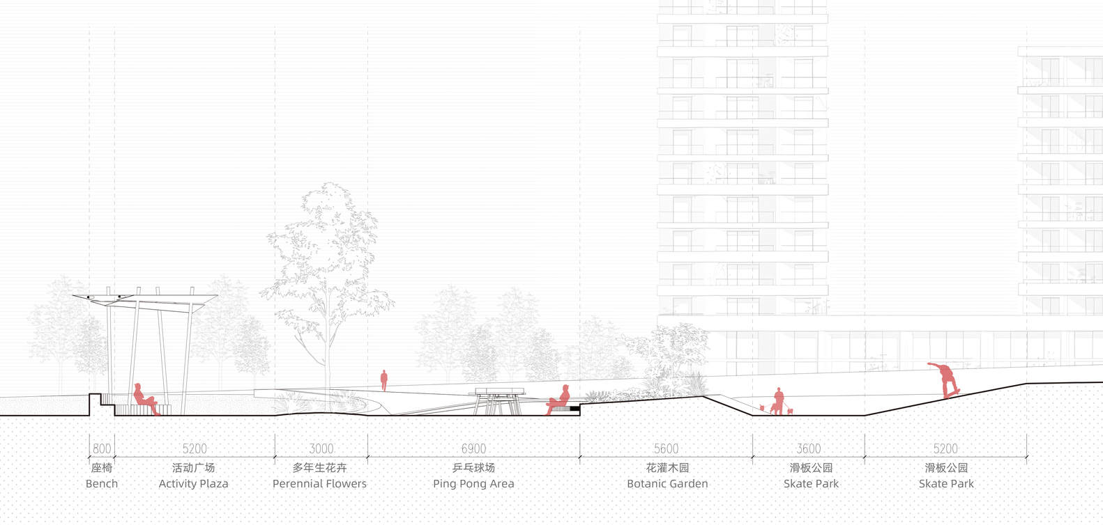 As the public activity core of the community, the Youth City Park emphasizes all-ages friendliness and social attributes. In addition to professional sports facilities, the park features diverse recreational amenities, including seating of various scales, shaded areas, and open activity zones, to encourage interaction and communication among residents. Meanwhile, the spatial design prioritizes accessibility and inclusivity, ensuring that users of different physical capabilities can find suitable activities here.