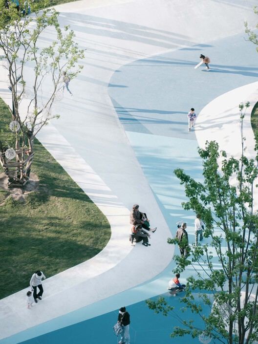 To emphasize the lightness of the sleeves while meeting the stringent requirements for surface continuity in skateboarding, the park utilizes Ultra-High Performance Concrete (UHPC) to create a sculptural "white ribbon" skate area. This innovative material choice not only provides excellent structural performance and durability but also visually reinforces the sense of flow, allowing the movement experience to echo the site's imagery. Furthermore, the project thoroughly considers the functionality and adaptability of the sports areas. Basketball courts, skate parks, table tennis courts, distinctive landscape pavilions, and children's play equipment are meticulously arranged to meet the sporting needs of residents across different age groups, with optimized circulation flows enhancing site utilization efficiency. Furthermore, the project thoroughly considers the functionality and adaptability of the sports areas. Basketball courts, skate parks, table tennis courts, distinctive landscape pavilions, and children's play equipment are meticulously arranged to meet the sporting needs of residents across different age groups, with optimized circulation flows enhancing site utilization efficiency.
