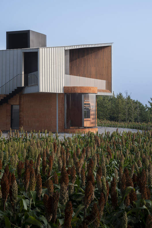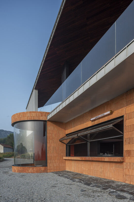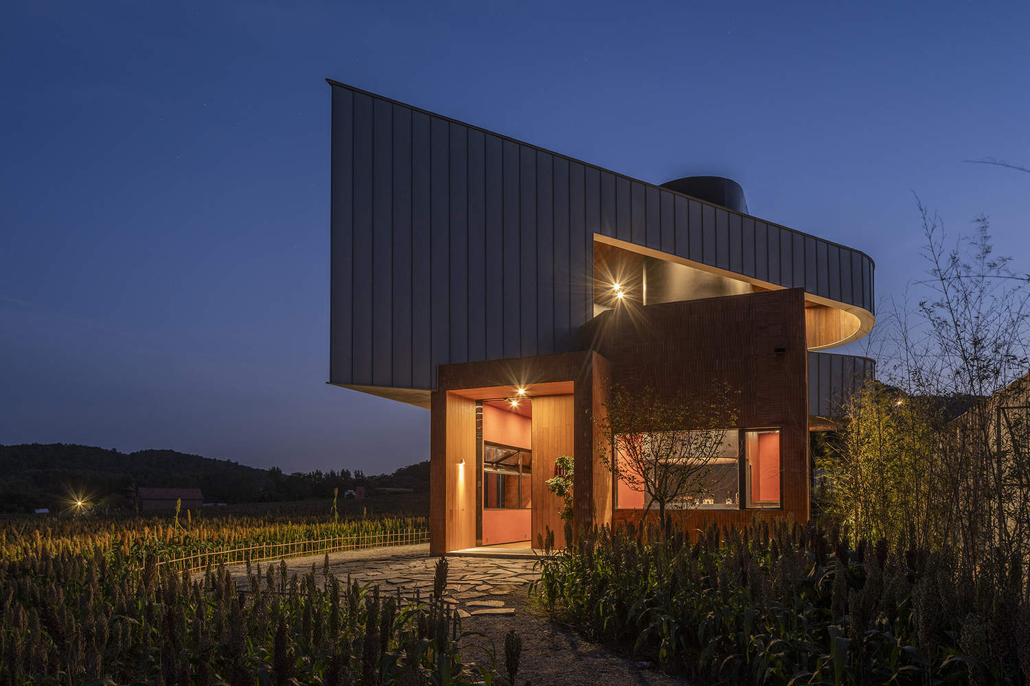 In the context of the contemporary ordinary countryside, this architectural practice attempts to absorb the styles used by self-built farmers and reconstruct them as a new prototype for rural facilities. At the corners of the building, curved glass is innovatively used, inside which there is a sunken immersive viewing space that looks out at the distant farmland.
