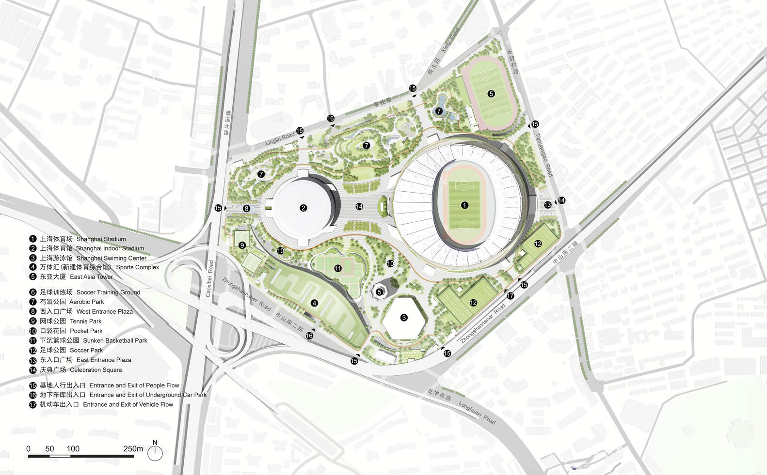 Original Name Shanghai Sports Center, the project was planned in the 1960s. Over nearly half a century, the Shanghai Gymnasium (1973), Shanghai Natatorium (1983), Shanghai Stadium, and Dongya Building (1997) were built successively. Various top domestic and international competitions have been held here, carrying the important memories of the development of sports in Shanghai and even China. Now, based on the retained "one stadium, two halls" and Dongya Building, it is being replanned and designed to create an open urban space.