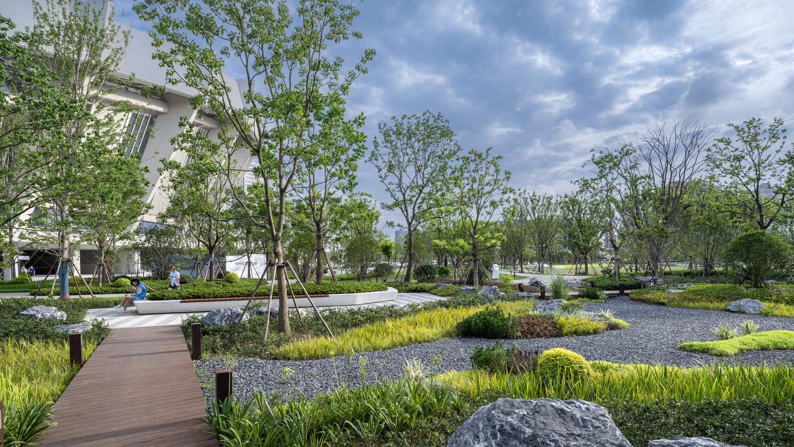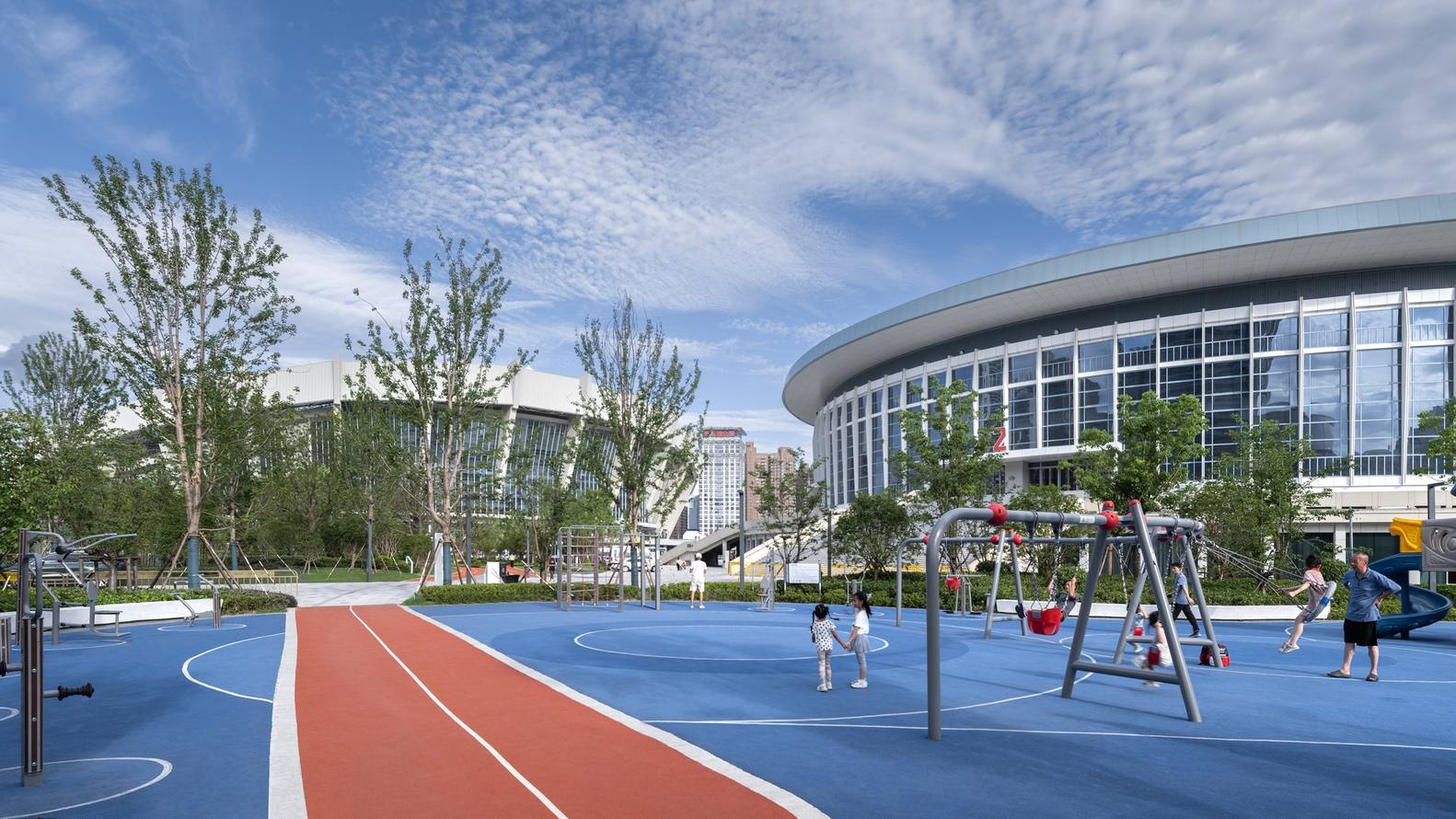 Before the renovation, designers found four main problems during the survey: chaotic road traffic, negative spaces, single sporting functions, and insufficient supporting facilities. Adhering to the planning concept of "revitalizing the city, greening the sports facilities, and activating the park," HPP proposed the renovation layout of "one axis, two wings, plus a circular track." The "one axis" retains the main functions of the existing stadium and gymnasium, forming an east-west "professional competition axis." The "two wings" divide the park into two major theme parks in the north and south and create a large amount of green space and urban vitality space. In addition, a double-loop track was creatively designed, with the outer loop integrated with the urban environment and the inner loop connecting the two major venues, providing convenience for people.