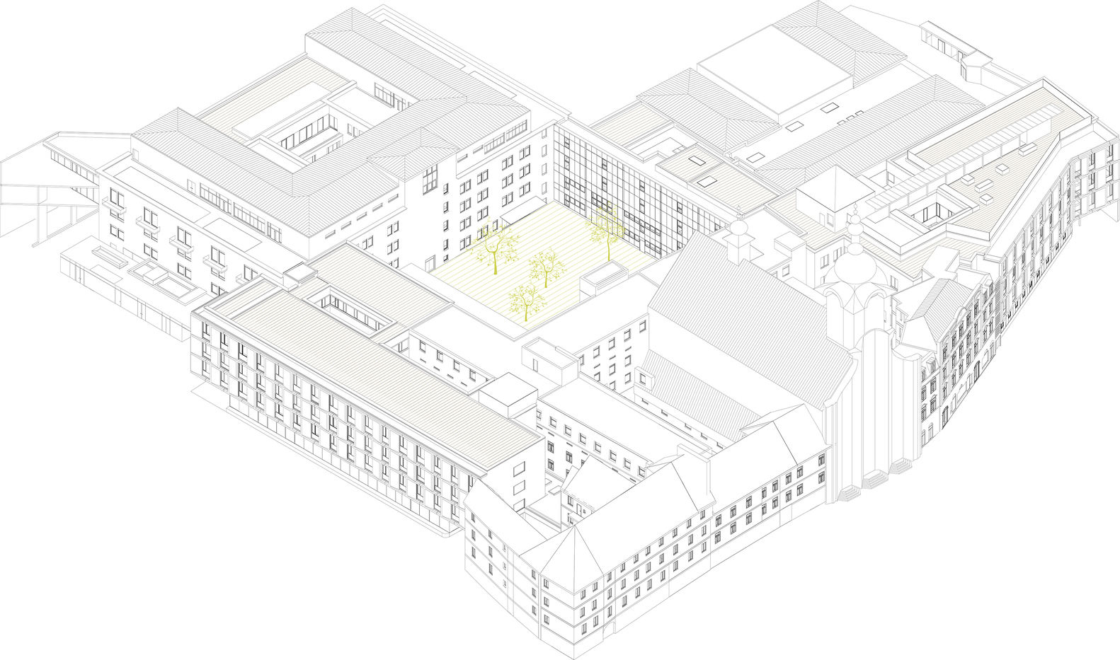 位于 Eggenberg 的 St. John of God 医院被拆除,并被整合到 Graz 中心 Marschallgasse 区域的新场地。这意味着除了医院的原有元素会被修复外,它的外观也会更新,与历史悠久的老城区保持一致。