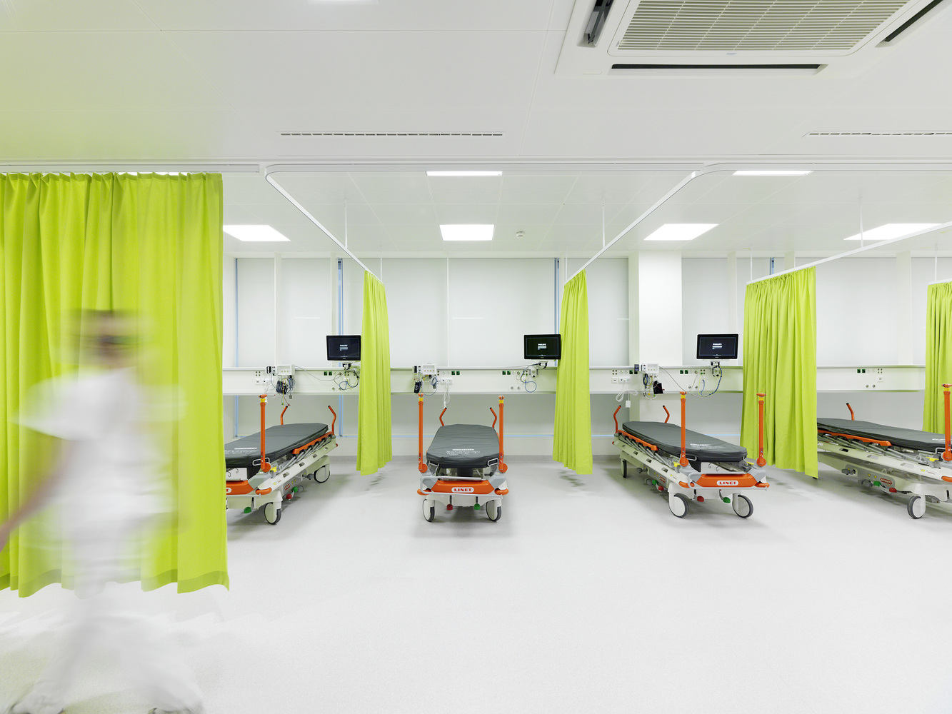 结构上和设计上有问题的元素被拆除,取而代之的是与新设计一致的元素。新的建筑是围绕着院子的一圈的封闭环形,解决了结构与功能的问题,同时也与周围的环境很好地结合在一起。平屋顶被设计成屋顶花园,成为病人和工作人员停留和放松的地方。