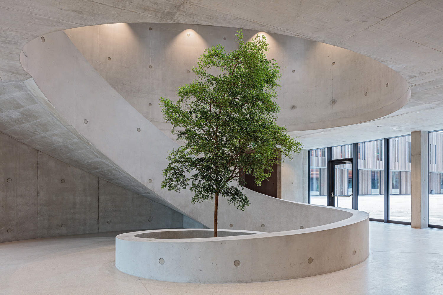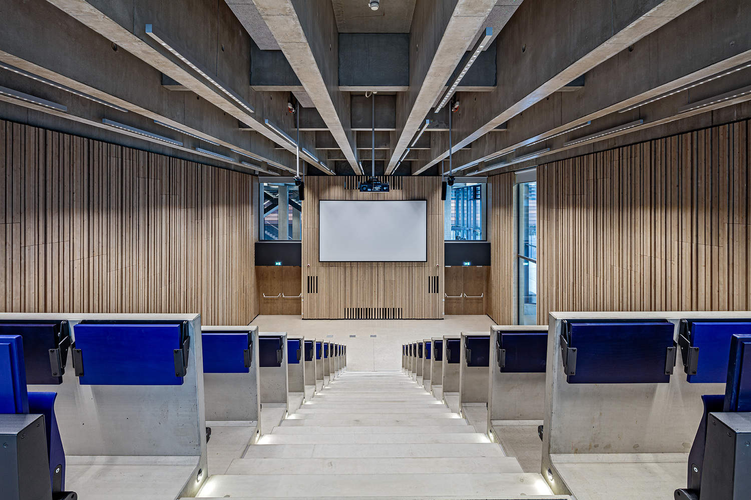 校园的想法是提倡研究、交流和沟通。教室和研究室、办公室、图书馆、咖啡馆、超市和商店混合在一个开放的校园周围,创造了一个生动的、有吸引力的城市氛围。1,800 名学生以及 250 名教授和科研人员将在这个 12,500 平方米的建筑中学习、教学和研究。