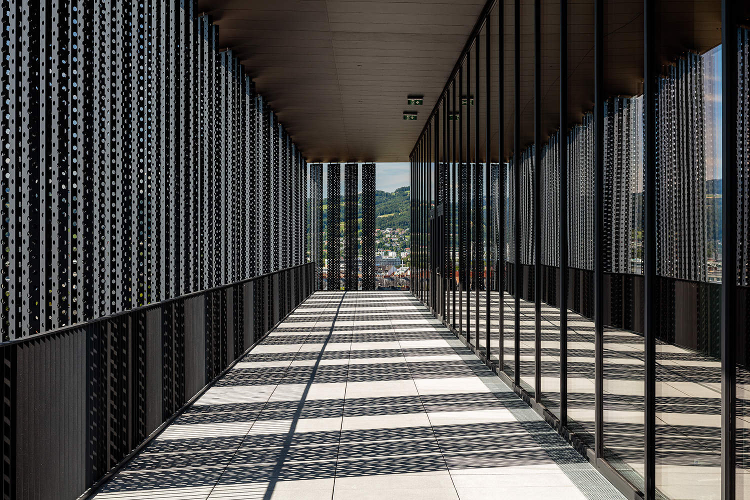 At its highest point, the medical campus culminates in the sky bar on the top floor of the administration building. While a restaurant outside the room program was initially suggested, it was ultimately decided to create space for events for the medical faculty.