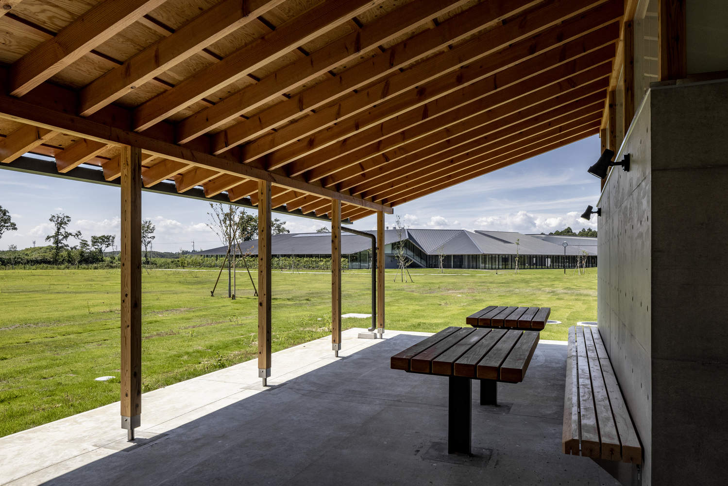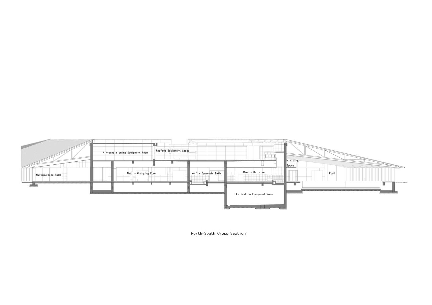 The site is located in the eastern hilly area, relatively far from the center of Mito City. This area was integrated after clearing miscellaneous trees and filling in valleys. In the process of seeking direct foundations to avoid building the structure on heterogeneous foundation structures, this ribbon-like form gradually emerged, determining the layout and shape of the building. The purpose of this project is to provide a place for community recreation and leisure, and to alleviate the psychological burden on residents due to the future construction of a waste incinerator and crematorium nearby. Its interior mainly includes functions such as a gymnasium, multi-purpose practice rooms, an indoor swimming pool, and sauna baths.