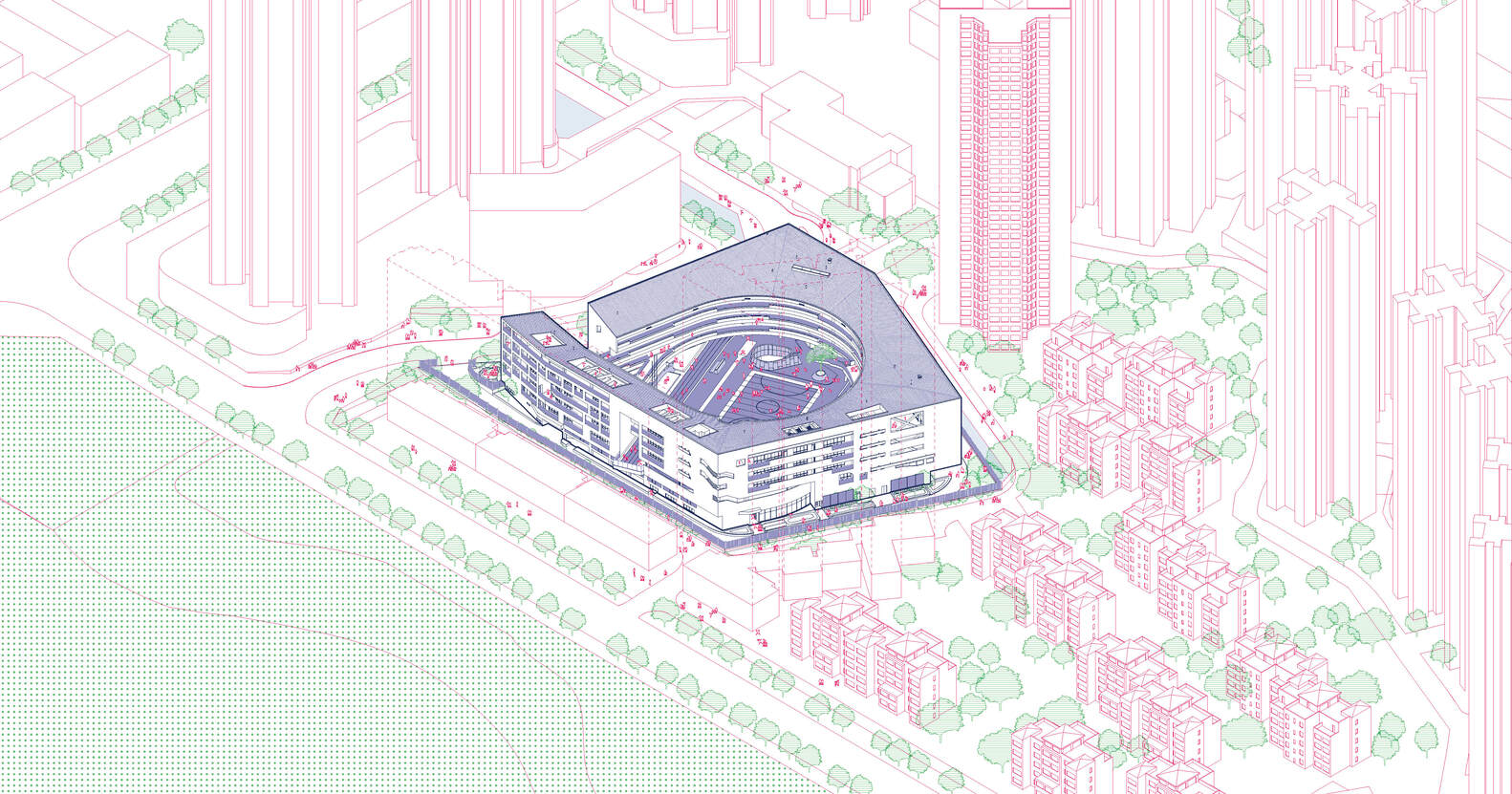 It is urgently needed to mend the fragmented urban blocks left behind by years of frantic real estate development and reweave them into complete, livable spaces. In this high-rise residential area in Longgang District, surrounded by urban villages, industrial parks, and main urban roads, we inserted the two primary and secondary schools, completing the construction of the overall block. The powerful geometric order of the Hakka walled enclosure serves as an anchor against the surrounding homogenized development. The open campus boundary and the internally connected settlement are not only public spaces for children to discover their potential but also provide the conditions for breaking down the closed walls of the campus and exploring co-management with the community, making it possible for the academy to nurture and grow together with the community.