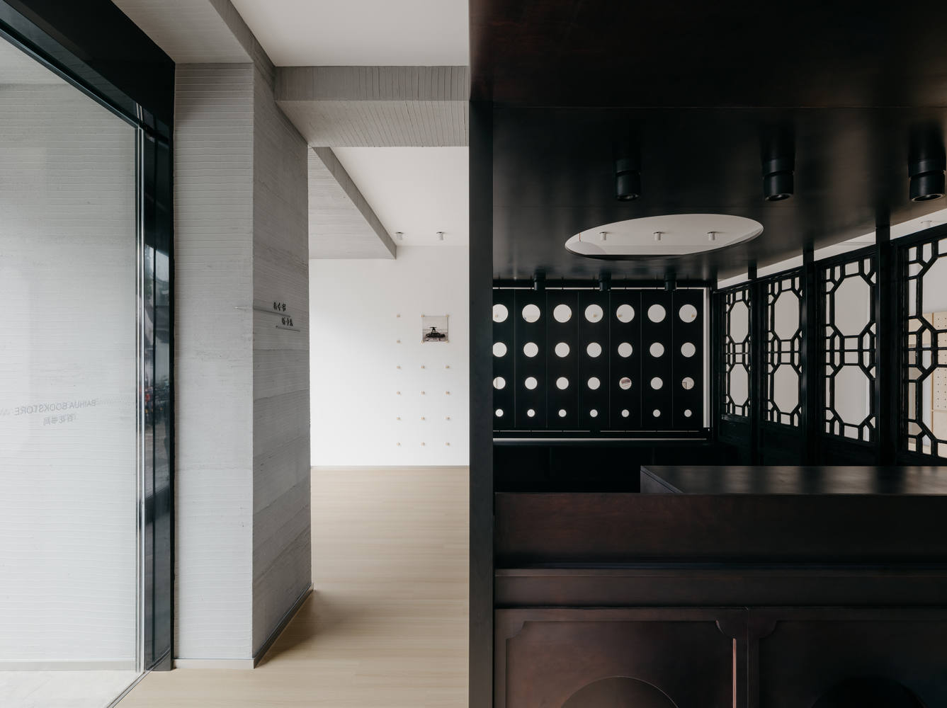 基于“堂名担”逻辑的空间活化与文化再生:本项目最精髓之处在于,建筑师没有局限于对现有空间(一个65平米的小附属用房)的物理改造,而是深入挖掘了其文化背景——与昆曲文化的深度绑定。通过提取传统戏班便携式门面“堂名担”的“可拆可合、走着演”的逻辑,设计了一种动态的、具有“生产能力”的“书店+”新节点。这种策略将一个旧有的、脱离文脉的出口空间,转译为一个嵌入式的“微型剧场”,实现了从被动展示到主动发生的功能重塑,体现了对文化元素的深刻理解与当代设计语言的巧妙转译。