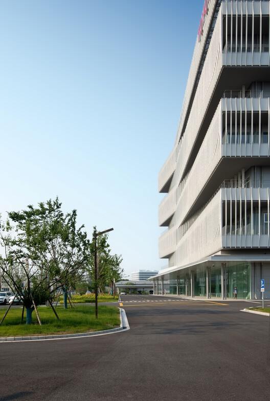 周边区域是上海汽车与科技产业的枢纽,目前正在进行重新开发,以吸引企业入驻,并发展成为一个专注于自动驾驶、燃料电池(FC)技术及其他领域的创新区。该区域在开发和吸引自动驾驶技术方面尤为积极,设有专门的公共道路测试区。毗邻的同济大学是中国燃料电池和氢能领域的领军者,推动着产学研合作及研发工作,以支持中国的氢能社会建设。建筑退让以在前方打造一片广阔的绿色广场,满足严格的绿化标准。该建筑采用亲生物设计原则,是一个多功能空间,既可用于休闲娱乐和聚会,也可在紧急情况下作为疏散场所,还能容纳餐车和举办体育赛事。