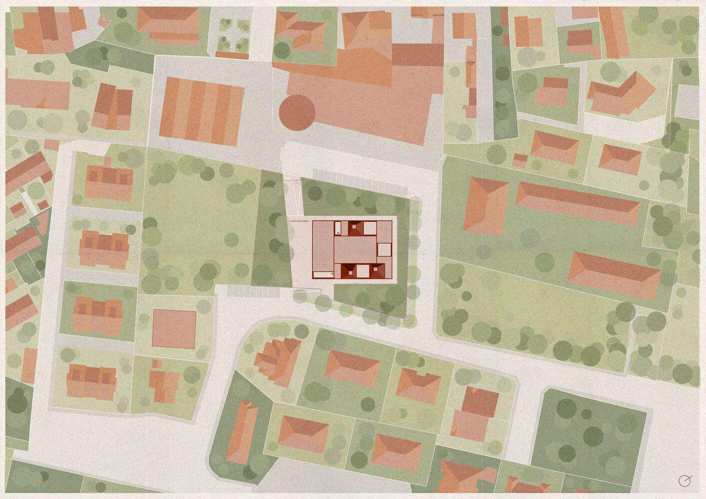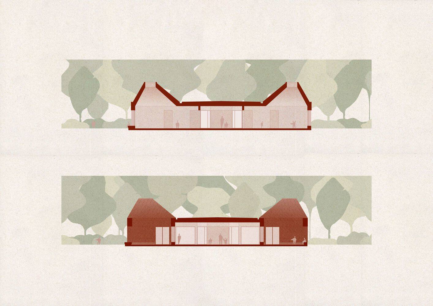 场地精神的深度在地化表达:该幼儿园设计精妙地从场地历史文脉中汲取灵感,尤其致敬了威尼托地区的传统渔民居所“卡索内”(Casone Veneto)。通过对陶土色外立面和坡屋顶的现代转译,建筑成功地将乡土记忆融入当代语境。这种对地方原型的尊重与创新,不仅赋予了建筑独特的身份认同,更在材质和形态上实现了与环境的和谐共生,展现了建筑师对场地精神的深刻理解与高超的文化重塑能力。