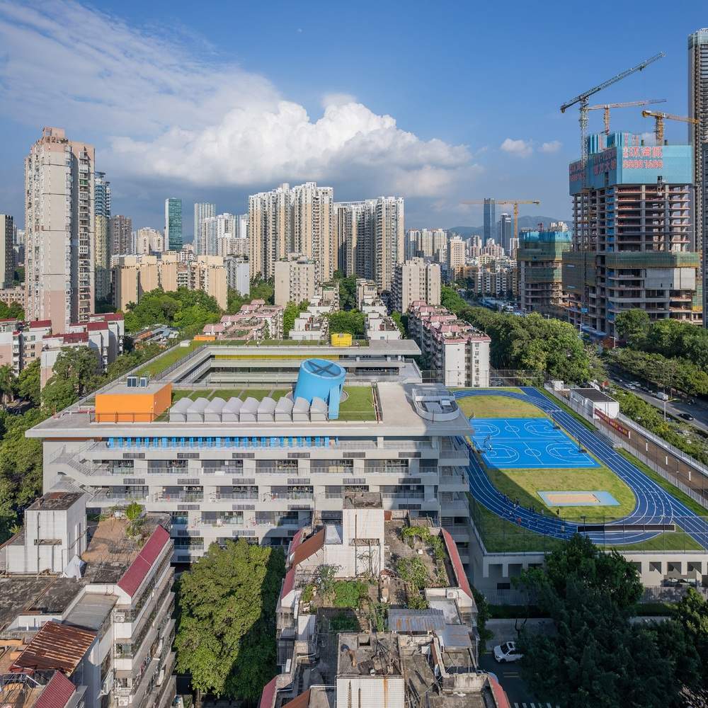 高密度环境下的可持续与场所精神:面对容积率2.26的高密度挑战,设计并未屈服于压抑,而是通过“多孔、开放”的形态促进了自然通风和微气候调节,体现了对深圳湿热气候的积极应对和可持续性考量。最终,建筑的开放与自由气质与周边城中村的有机肌理相融合,实现了设计初衷与社区环境的良性互动,使高密度校园转化为塑造场所特色的机遇,展现出设计与日常行为之间难得的默契。