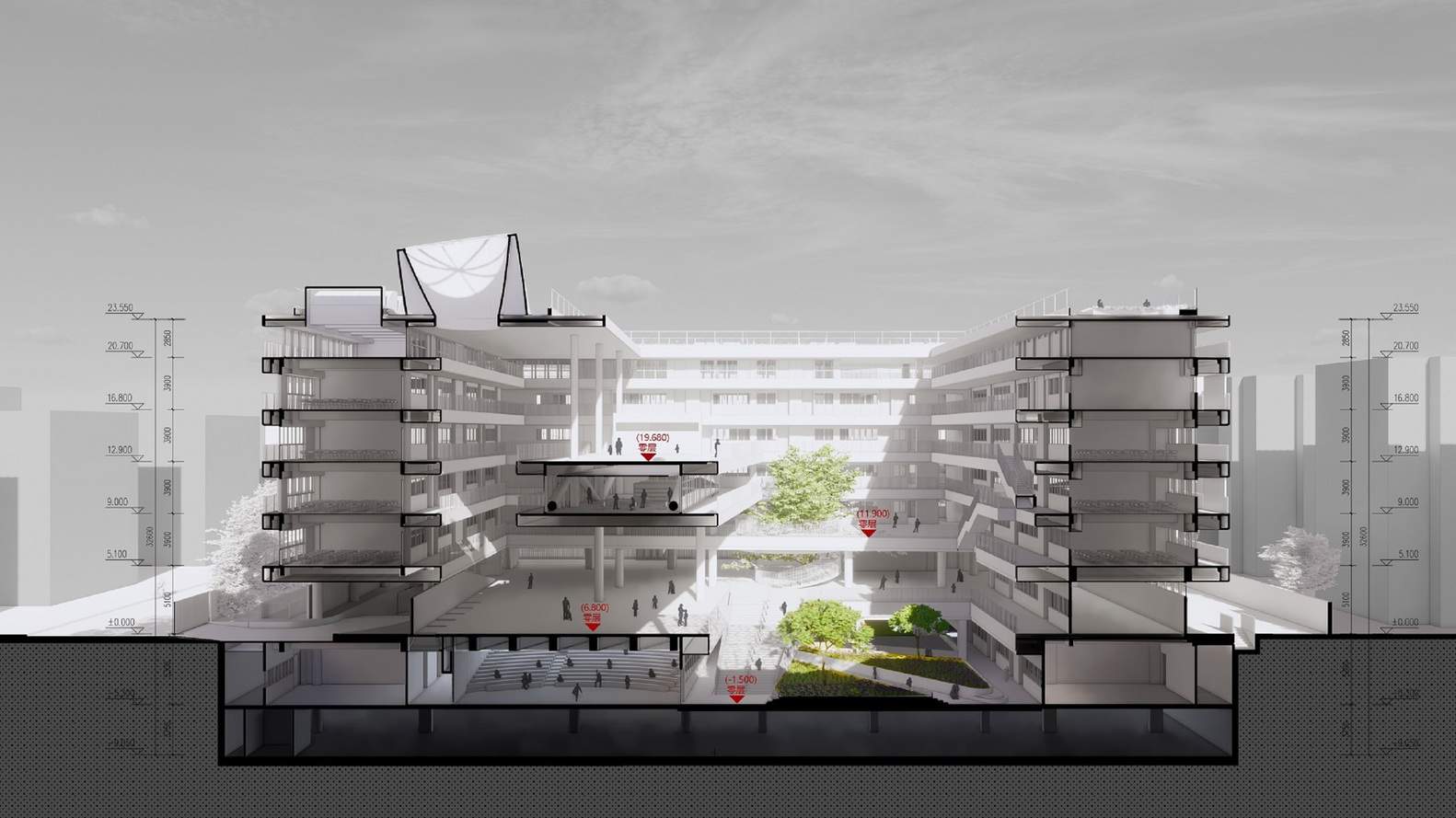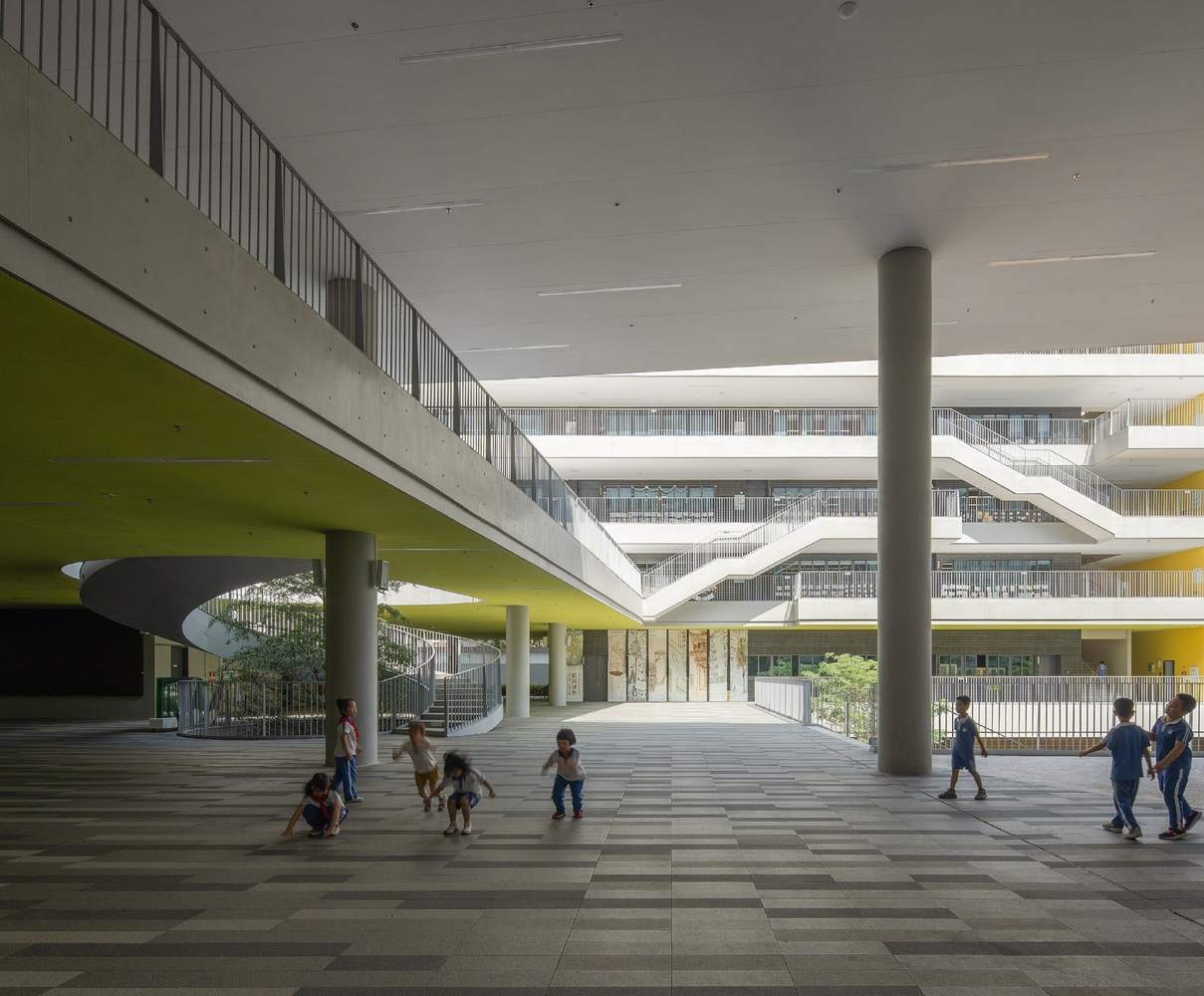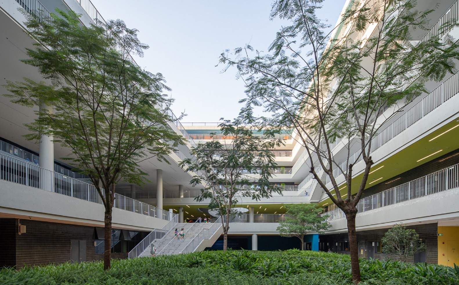 In traditional school buildings, students in higher-floor classes often have difficulty accessing ground-level activity areas during breaks. The multi-platform design eliminates this vertical inequality, ensuring that every student, regardless of their floor level, enjoys equal access to activity spaces. These platforms are not merely transitional areas; they also serve as small social hubs, temporary exhibition spaces, and informal learning spots, greatly enriching the layers of campus life.