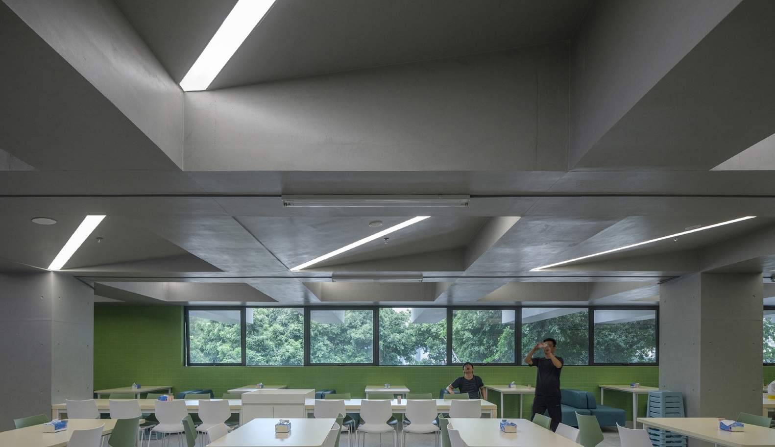 In Shenzhen's hot and humid climate, the porous design promotes natural ventilation and heat dissipation. The staggered openings form wind corridors, guiding airflow through the building complex; shading devices combined with greenery create a comfortable microclimate. This design not only reduces energy consumption but also allows students to personally experience the value of sustainable design.