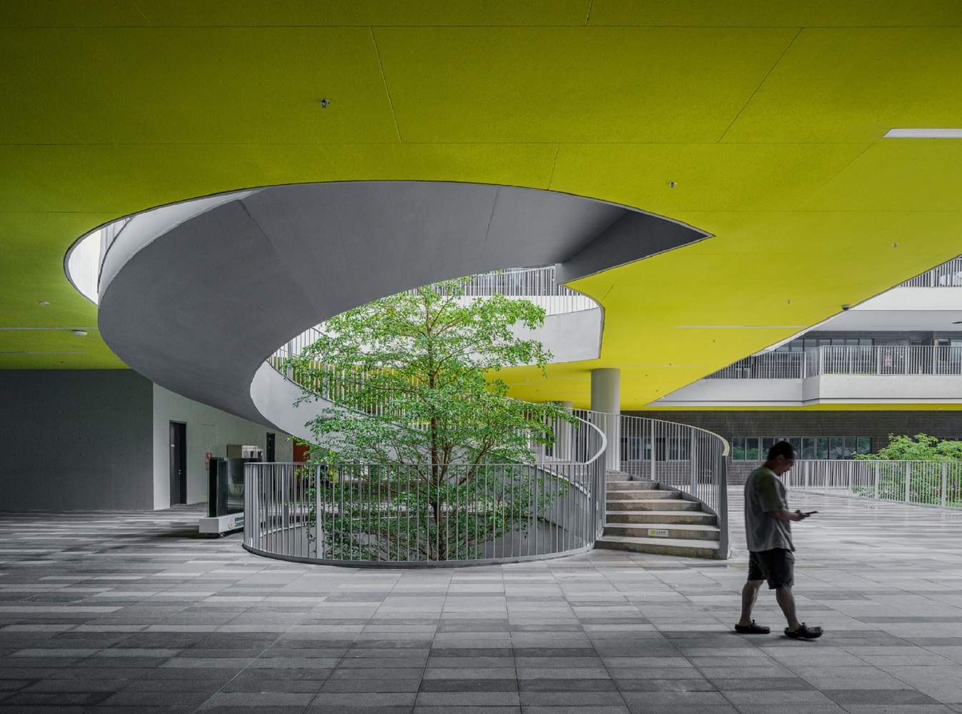 传统教学楼中,高层班级的学生往往难以在课间到达地面活动场地。多平台设计消除了这种垂直不平等,确保每个学生,无论所在楼层高低,都能平等享受活动空间。这些平台不仅是过渡区域,更是小型社交中心、临时展览空间和非正式学习场所,极大地丰富了校园生活的层次。
