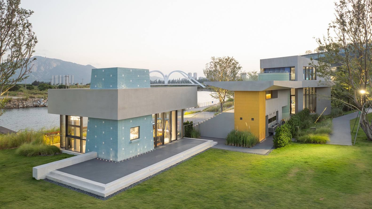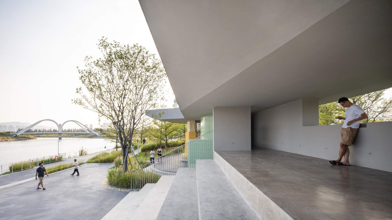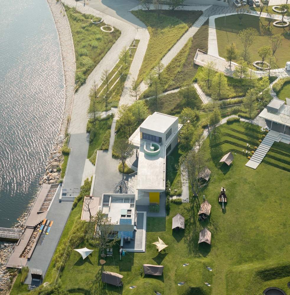 来自建筑师。Studio 10 为位于福建漳州开发区双鱼岛的咏气演化所设计了一组实验性水上运动配套建筑。该项目是一处融合轻文旅、水上运动与社区服务功能的综合设施,旨在为运动爱好者、游客及周边居民提供零售、轻餐饮、小型展览、休憩阶梯与公共卫生间等服务。