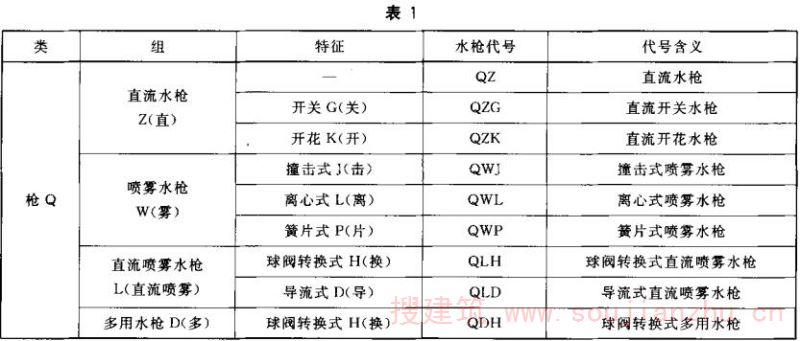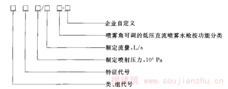 4.2.1 水枪的型号由类、组代号,特征代号,额定喷射压力和额定流量等组成。