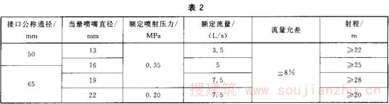 5.1.1.1 直流水枪在额定喷射压力时,其额定流量和射程应符合表2的要求。