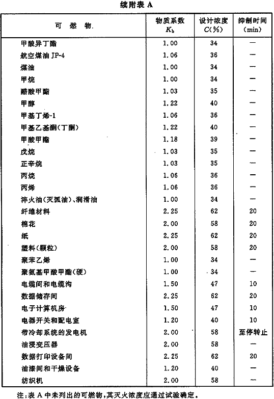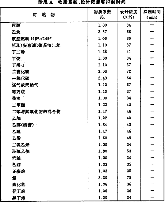 附录A 物质系数、设计浓度和抑制时间