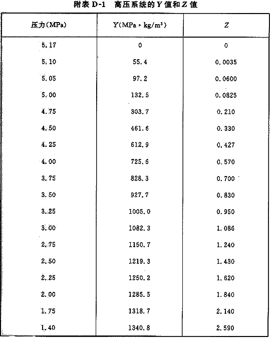 附录D 二氧化碳的Y值和Z值