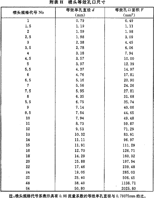 附录H喷头等效孔口尺寸