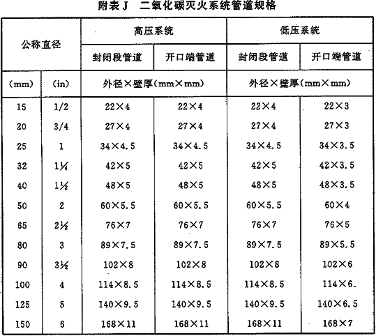 附录J二氧化碳灭火系统管道规格