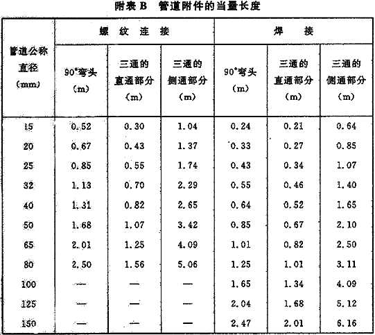 附录B 管道附件的当量长度