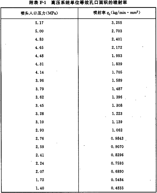 附录F 喷头入口压力与单位面积的喷射率