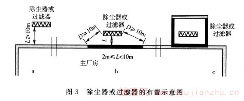 ②设有为爆炸性粉尘环境服务,并用墙隔绝的送风机室,其通向爆炸性粉尘环境的风道设有能防止爆炸性粉尘混合物侵人的安全装置,如单向流通风道及能阻火的安全装置;