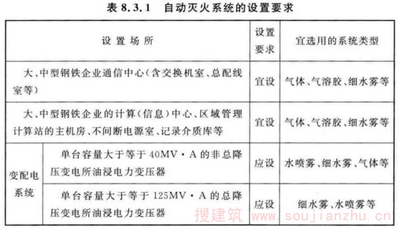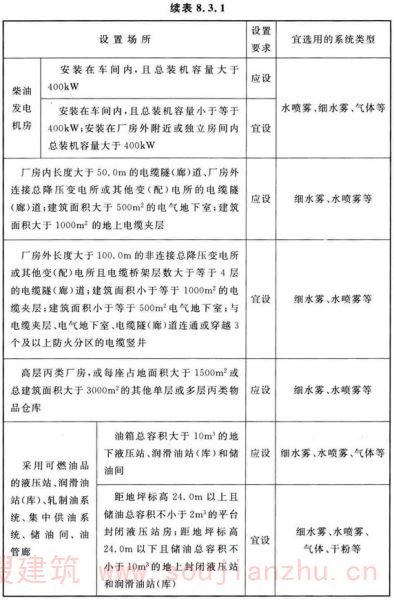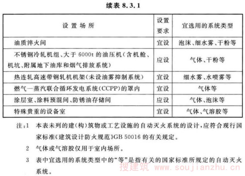4.对原规范第8.3.1条表8.3.1有关自动灭火系统的设置要求进行了调整。