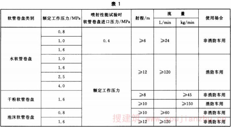 软管卷盘应按6.1规定进行喷射性能试验。试验结果应符合表1规定。