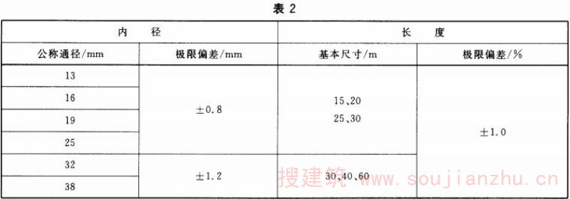 5.8.1 软管的内径、长度和相应的极限偏差应符合表2规定。