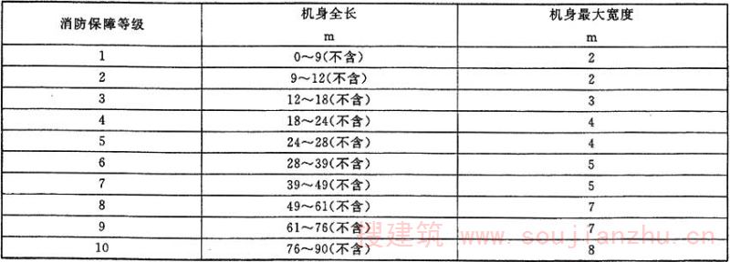 3.1 机场消防保障等缴应根据该机场起降的最高类别航空器机身长度、宽度和起降频率(一年连续最繁忙的3个月内的起降次数)确定。按机身长度、宽度共划分为10个等级,见表1。