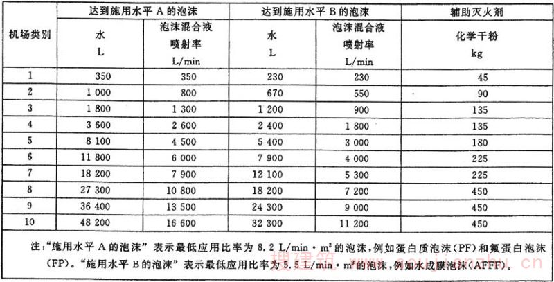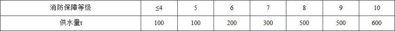 消防用水量应为车载泡沫补充水量、储备泡沫用水量和冷却航空器用水量之和,消防供水量应以1h用量计。飞行区消防供水量不应低于表6的要求。