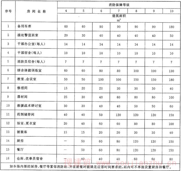 5.2 消防站的建筑面积见表4,建筑耐火等级应不低于2级,并应符合当地抗震要求。