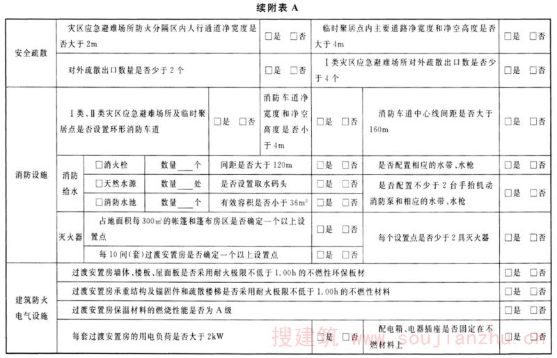 A.0.1 过渡安置点防火巡查记录表应符合附表A的规定。