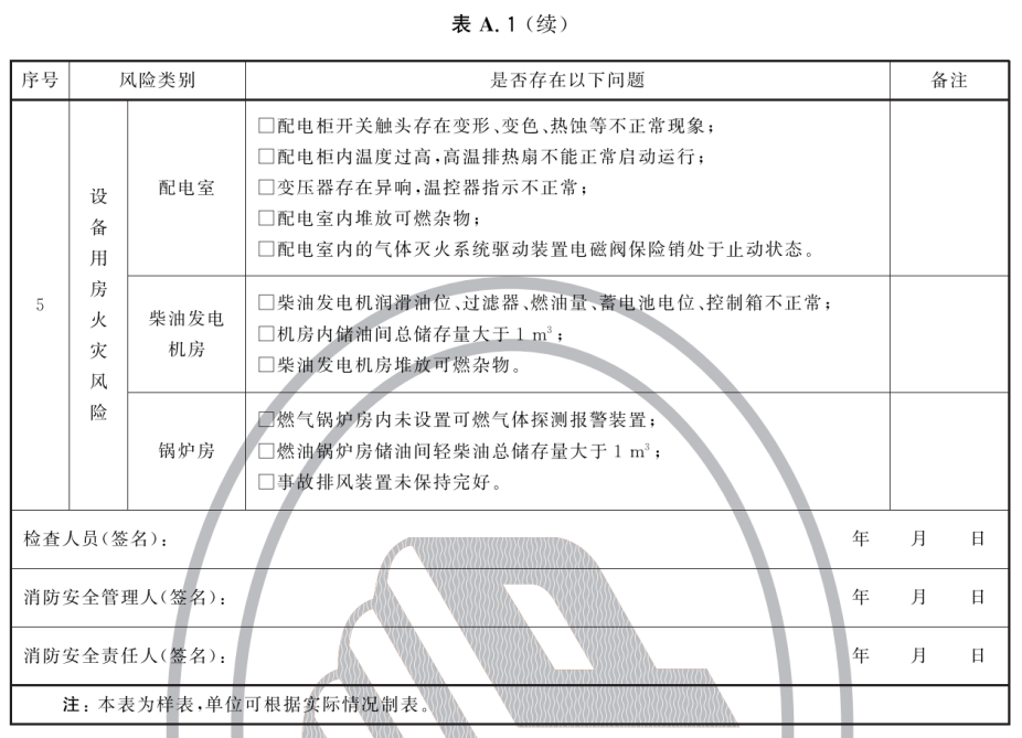 大型商业综合体火灾风险自查表见表A.1。