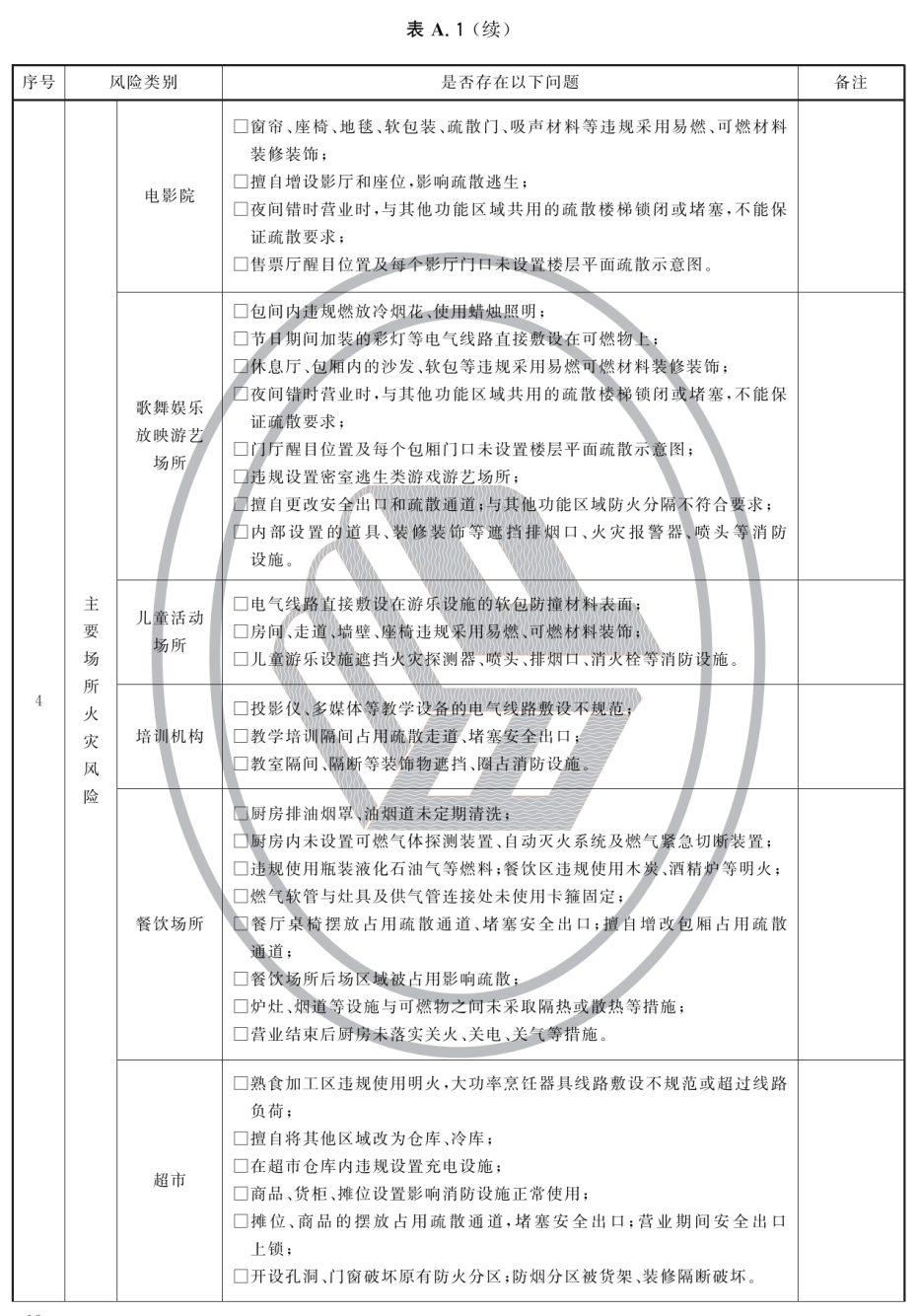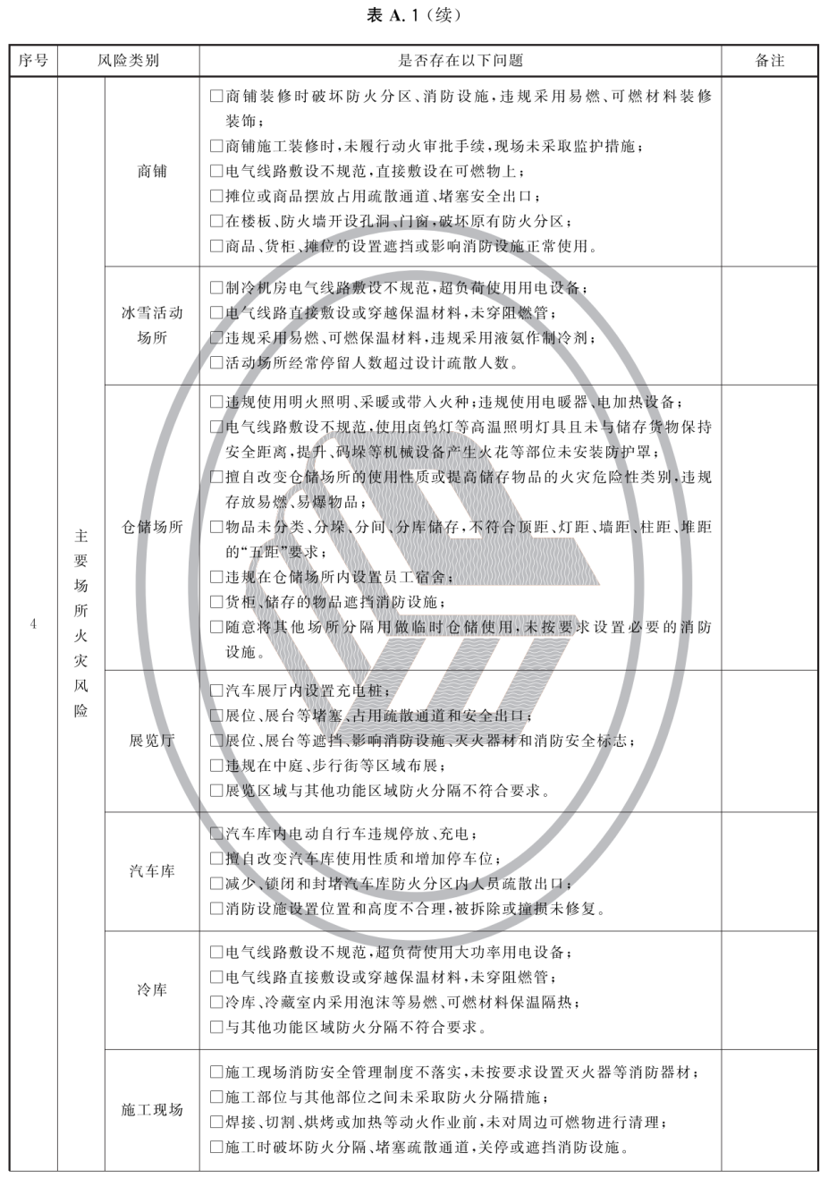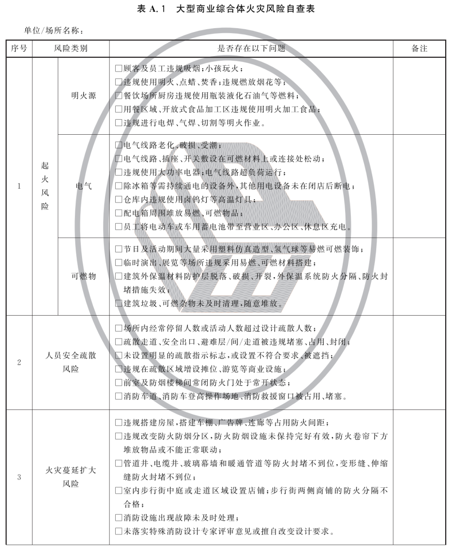 附录A(资料性)大型商业综合体火灾风险自查表