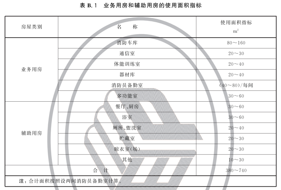 B.1 专职消防队业务用房和辅助用房的使用面积指标见表B.1。