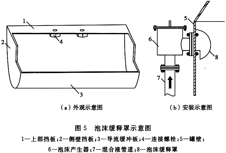 安装在固定顶或内浮顶储罐泡沫产生器出口,引导泡沫沿罐壁向下缓释放到水溶性液体表面或单盘、双盘环形密封区的装置。