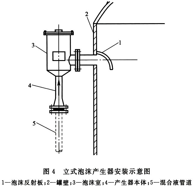在甲、乙、丙类液体立式储罐罐壁上铅垂安装的泡沫产生器。