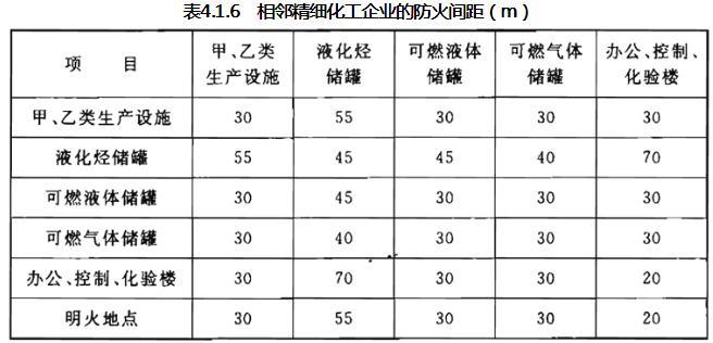 4.1.6 相邻精细化工企业的防火间距不应小于表4.1.6的规定。